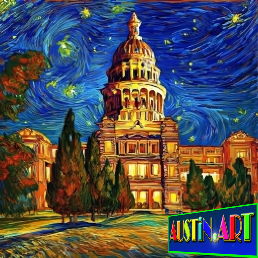 BEE CAVE ART EXHIBITION: Austin Capitol Building And Austin Skyline Traveling Around The World!